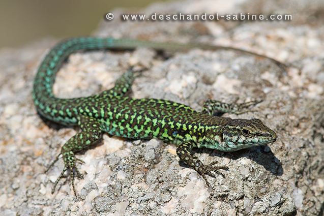 : Lézard Tyrrhénien (Podarcis tiliguerta), mâle, Bonifacio, Corse.
