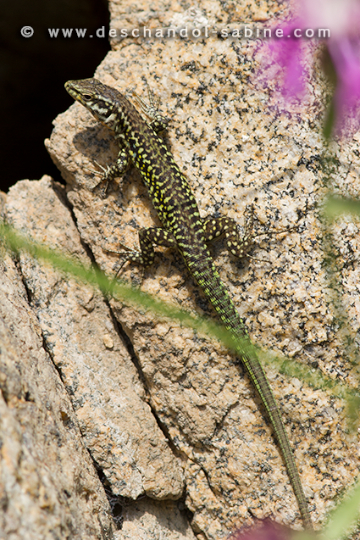 : Lézard Tyrrhénien (Podarcis tiliguerta), mâle, Portigliolo, Corse.