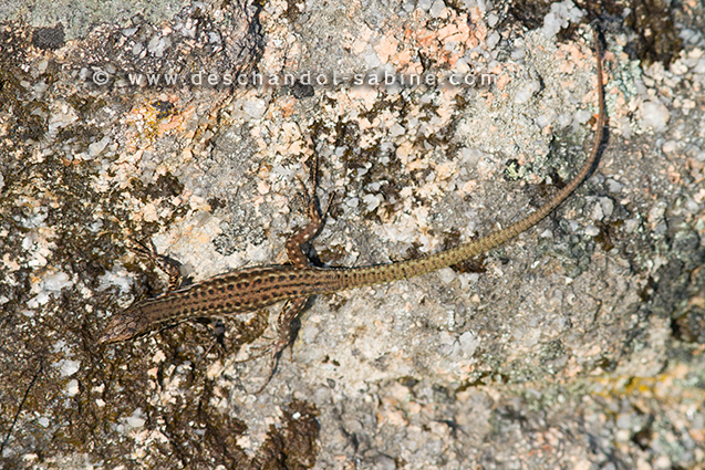 : Lézard Tyrrhénien (Podarcis tiliguerta), femelle, Portigliolo, Corse.