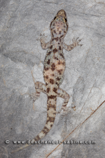 : Hémidactyle verruqueux (Hemidactylus turcicus), Campofrio, Espagne.