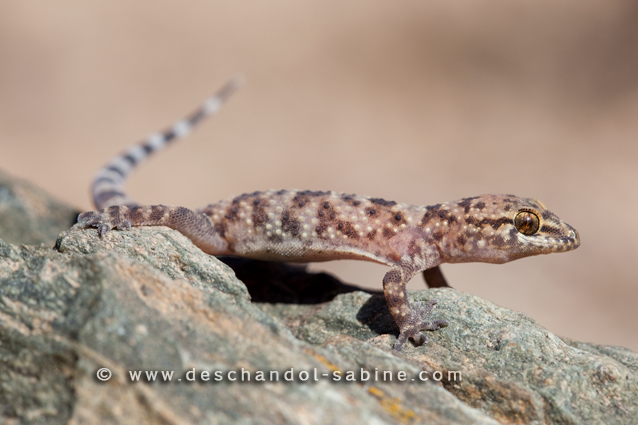 : Hémidactyle verruqueux (Hemidactylus turcicus), jeune, Campofrio, Espagne.