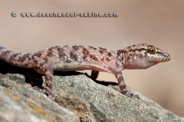 : Hémidactyle verruqueux (Hemidactylus turcicus), jeune, Campofrio, Espagne.