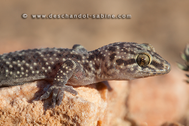 : Hémidactyle verruqueux (Hemidactylus turcicus), Cap d'Artrutx, Minorque, Baléares, Espagne.