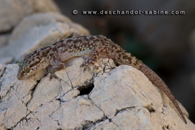 : (Hemidactylus turcicus), Illa Gran d'Addaia, Minorque, Baléares, Espagne.