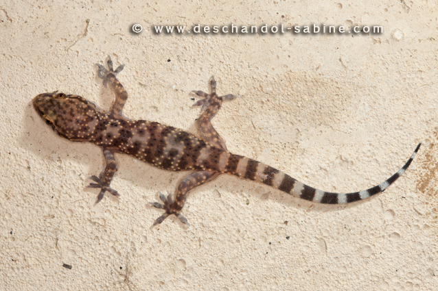 : Hémidactyle verruqueux (Hemidactylus turcicus), subadulte, Los Milanos, Espagne.