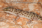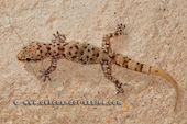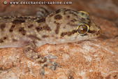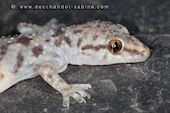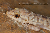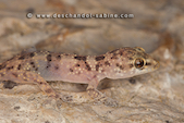 Hémidactyle verruqueux (Hemidactylus turcicus), jeune, Campofrio, Espagne.