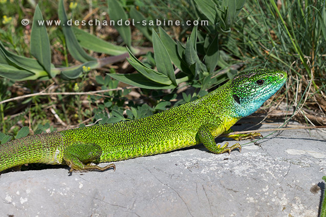: Lézard vert oriental (Lacerta viridis viridis), Rasticevo, Croatie.