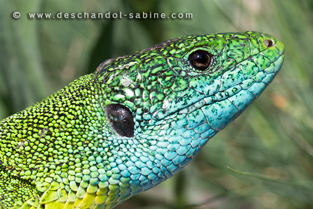 : Lézard vert oriental (Lacerta viridis viridis), Rasticevo, Croatie.