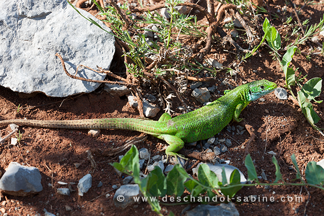 : Lézard vert oriental (Lacerta viridis viridis), Croatie.