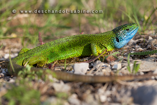 : Lézard vert oriental (Lacerta viridis viridis), mâle, Croatie.