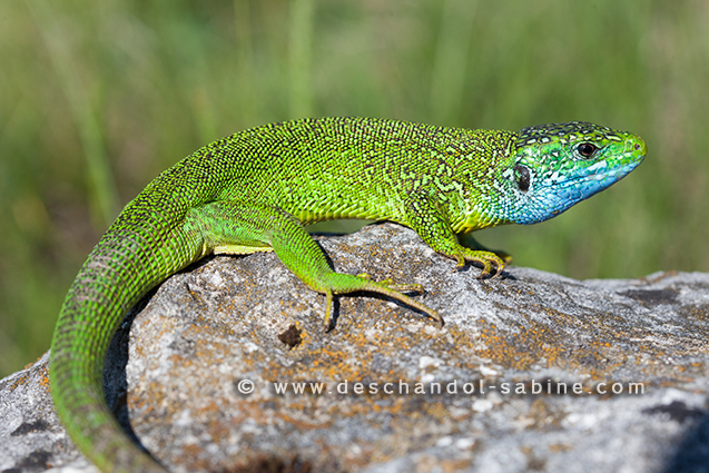 : Lézard vert oriental (Lacerta viridis viridis), mâle, Croatie.