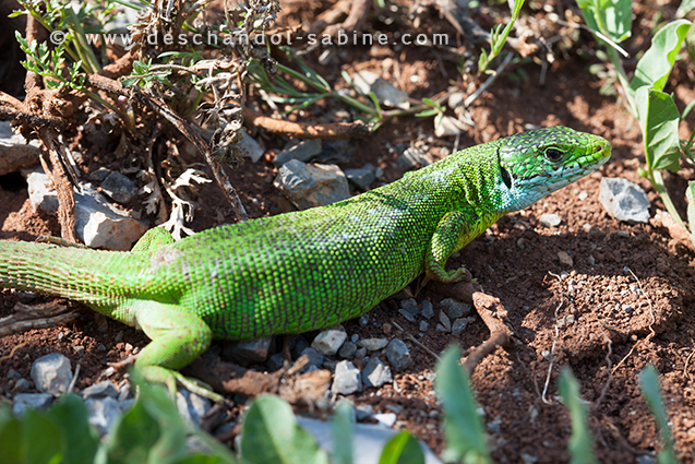 : Lézard vert oriental (Lacerta viridis viridis), Croatie.