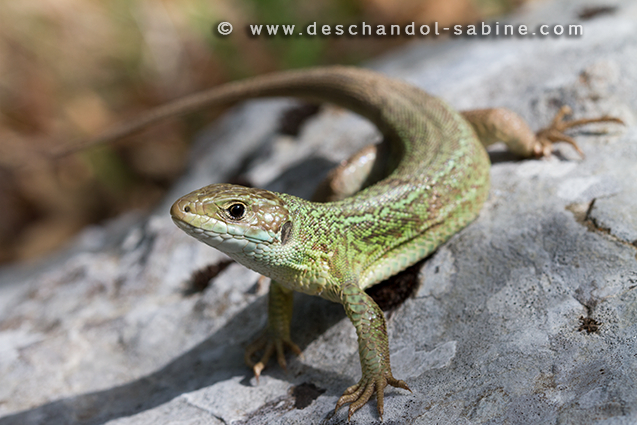 : Lézard vert oriental (Lacerta viridis viridis), Croatie.
