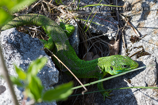 : Lézard vert oriental (Lacerta viridis viridis), Gracac, Croatie.