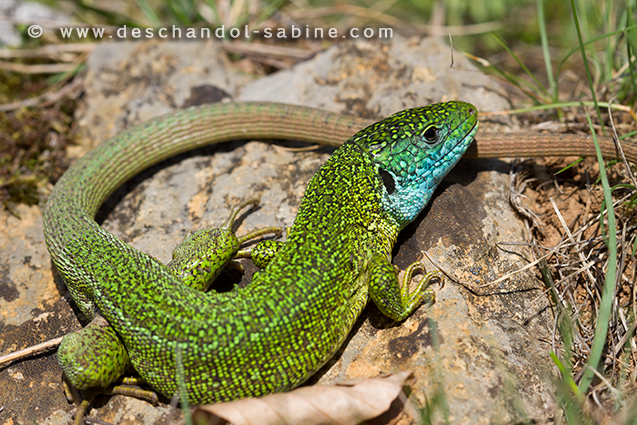 : Lézard vert oriental (Lacerta viridis viridis), Gracac, Croatie.