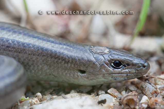 : Seps tridactyle (Chalcides chalcides vittatus), Nuoro, Sardaigne.