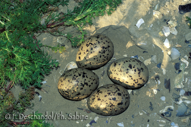 : Huîtrier-pie (Haematopus ostralegus), oeufs, Baie de Seine (76), France.