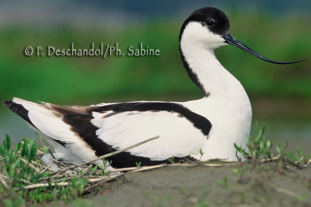 : Avocette (Recurvirostra avosetta), au nid, Baie de Seine (76), France.