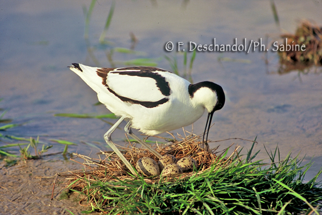 : Avocette (Recurvirostra avosetta), au nid, Baie de Seine (76), France.