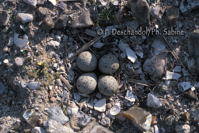 : Petit gravelot (Charadrius dubius), oeufs, Baie de Seine (76), France.