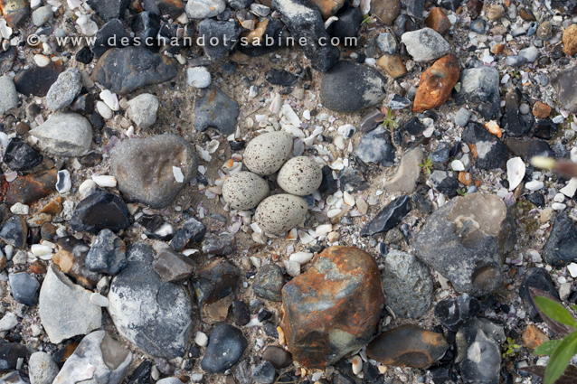 : Petit gravelot (Charadrius dubius), oeufs, Baie de Seine (76), France.