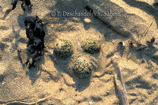: Gravelot à collier interrompu (Charadrius alexandrinus), oeufs, Baie de Seine (76), France.