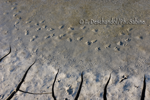 : Traces de pattes de Limicoles sur la vase, Baie de Seine (76), France.