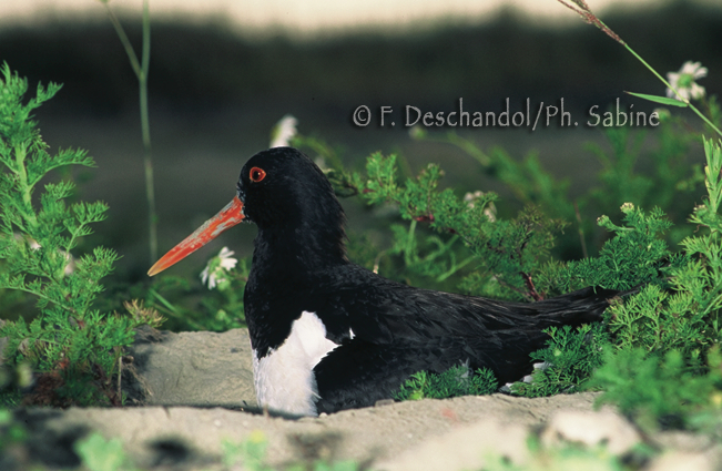 : Huîtrier-pie (Haematopus ostralegus), au nid, Baie de Seine (76), France.