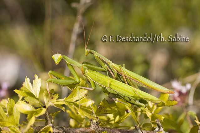 : Mantes religieuses (Mantis religiosa), accouplement, Baie de Seine (76), France.
