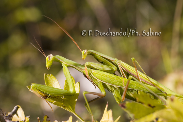 : Mantes religieuses (Mantis religiosa), accouplement, Baie de Seine (76), France.