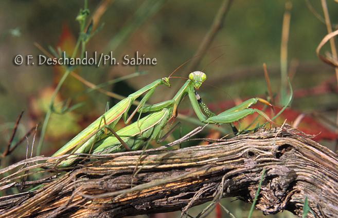 : Mantes religieuses (Mantis religiosa), accouplement, Baie de Seine (76), France.