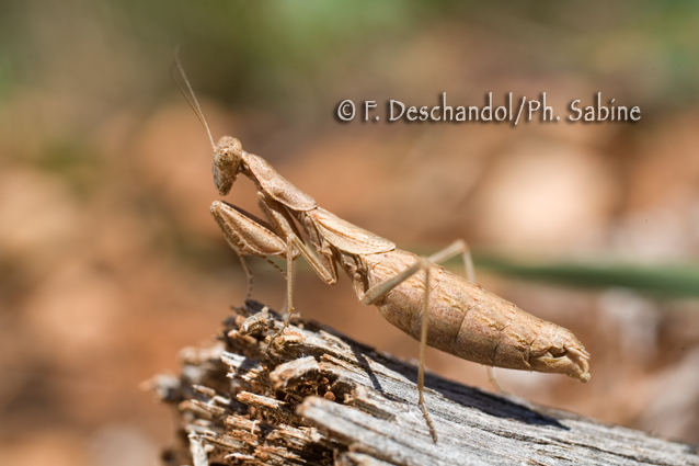 : Mante décolorée (Ameles decolor), femelle forme brune, Aiguines (83), France.