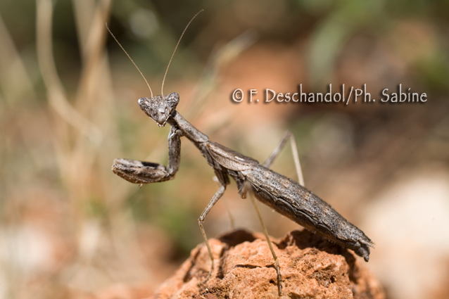 : Mante décolorée (Ameles decolor), femelle forme grise, Aiguines (83), France.