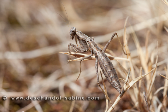 : Mante décolorée (Ameles decolor), femelle forme grise, Lac du Salagou (34), France.