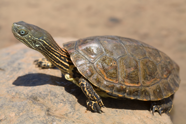 : Emyde lépreuse (Mauremys leprosa vanmeerhaghei), jeune, environs de Ouarzazate, Maroc.