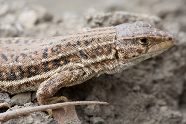 : Acanthodactyle commun (Acanthodactylus erythrurus belli) montagnes entre Ouarzazate et Marrakech, Maroc.