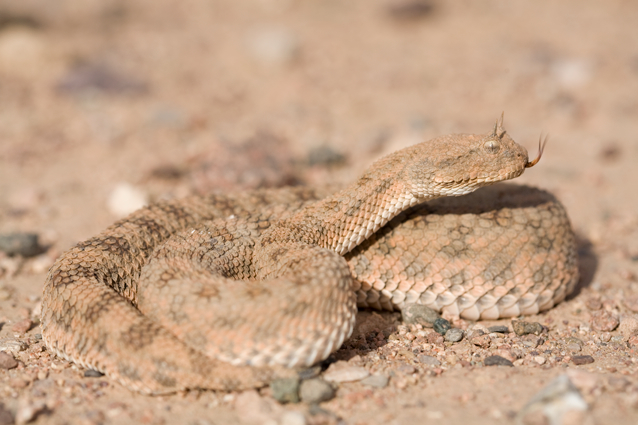 : Vipère à cornes (Cerastes cerastes), environs de Skoura, Maroc.