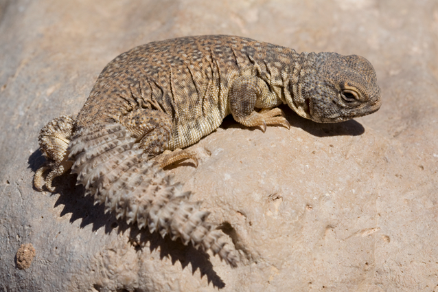 : Fouette-Queue (Uromastyx acanthinurus), jeune, environs de Skoura, Maroc.