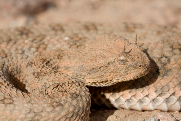 : Vipère à cornes (Cerastes cerastes), environs de Skoura, Maroc.
