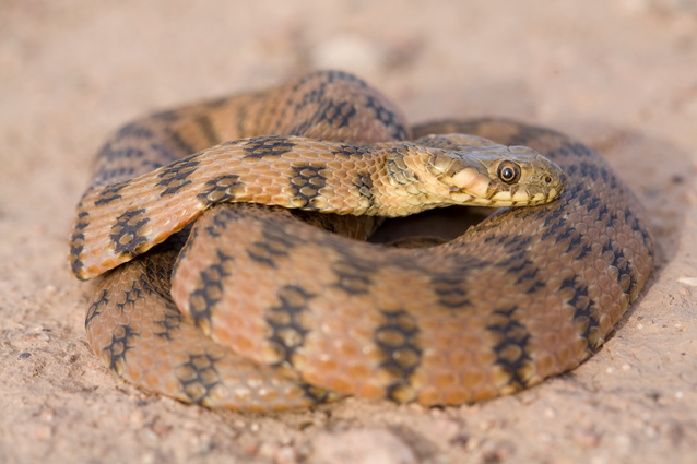 : Couleuvre vipérine (Natrix maura), environs de Ouarzazate, Maroc.