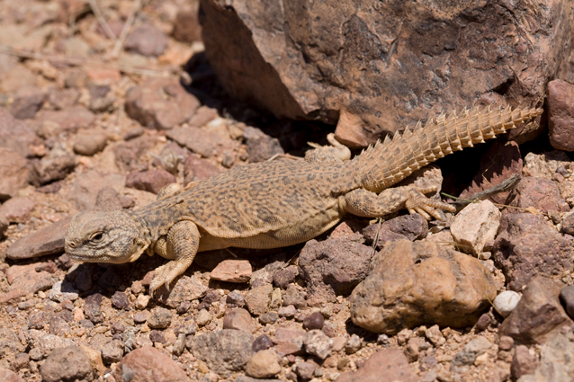 : Fouette-Queue (Uromastyx acanthinurus), jeune, environs de Skoura, Maroc.