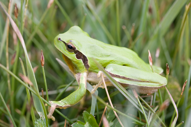 : Rainette méridionale (Hyla meridionalis), mâle, Oukaïmeden, Maroc.