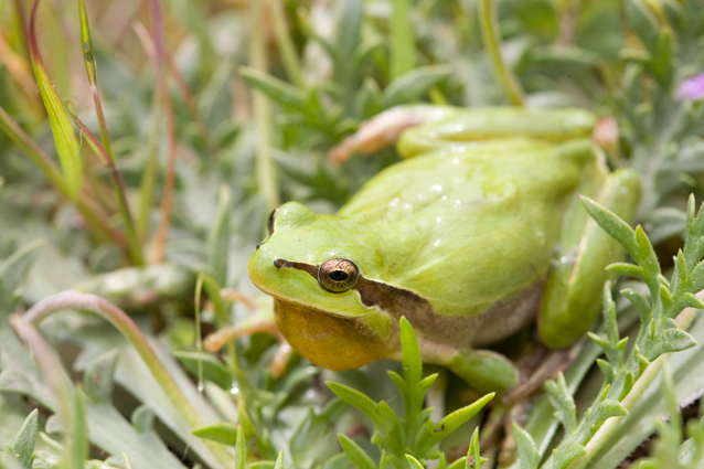 : Rainette méridionale (Hyla meridionalis), mâle, Oukaïmeden, Maroc.