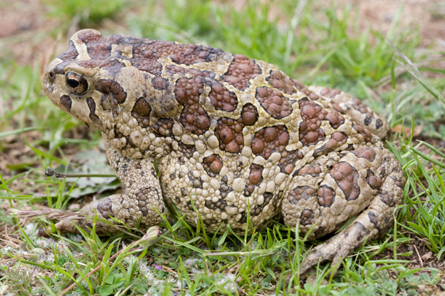 : Crapaud de Maurétanie (Bufo mauritanicus), femelle, Oukaïmeden, Maroc.