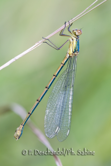 : Leste vert (Lestes viridis), femelle immature, Montivilliers (76), France.