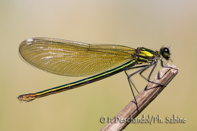 : Caloptéryx éclatant (Calopteryx splendens), femelle, Corneville sur Risle (27), France.