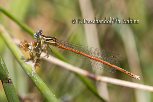 : Pennipatte orangé (Platycnemis acutipennis), mâle, Plessé (44), France.