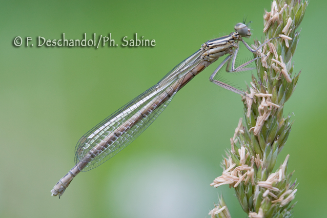 : Pennipatte orangé (Platycnemis acutipennis), femelle, Plessé (44), France.