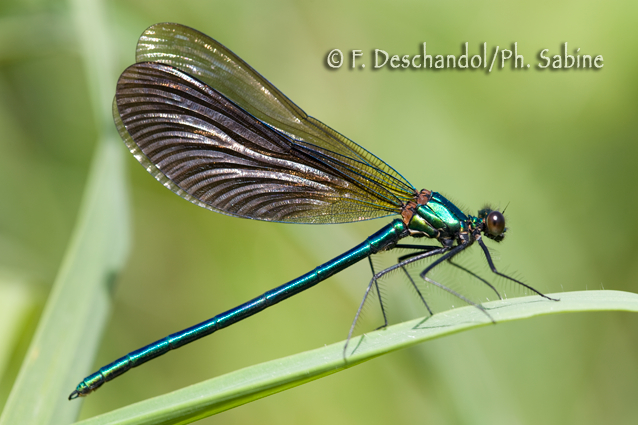 : Caloptéryx vierge (Calopteryx virgo), mâle, Corneville sur Risle (27), France.