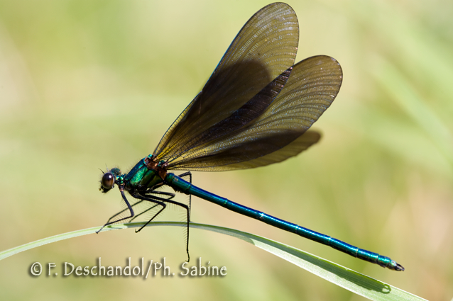 : Caloptéryx vierge (Calopteryx virgo), mâle, Corneville sur Risle (27), France.